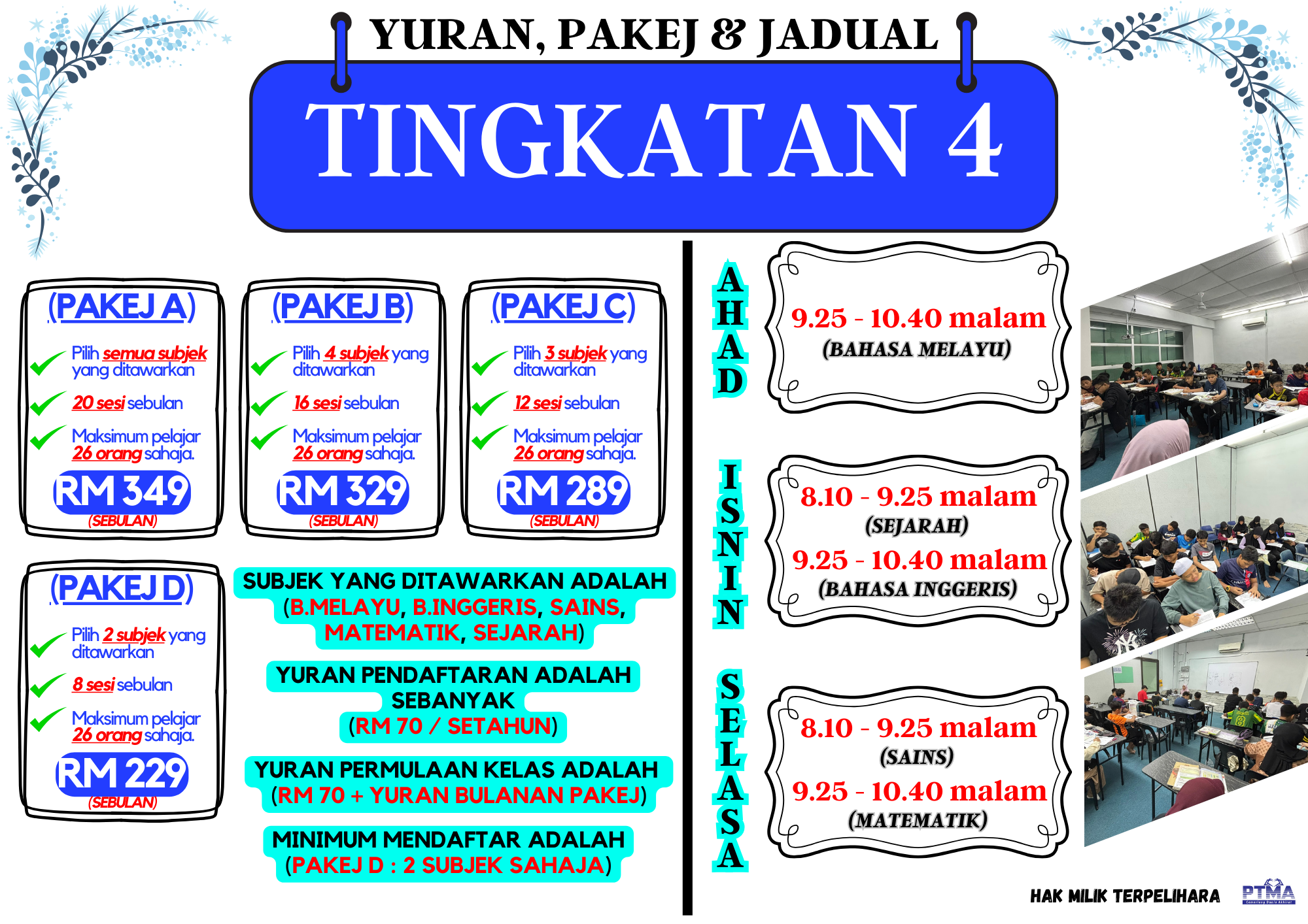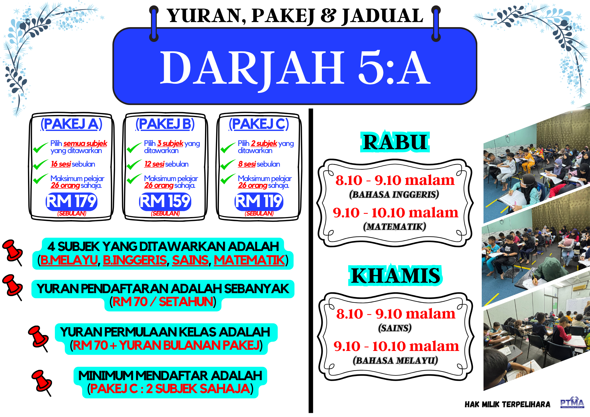 PTMA komitmen dalam melahirkan generasi pelajar muslim berjaya berkonsepkan “Cemerlang Dunia Akhirat” iaitu ingin membantu pelajar mendapat keputusan cemerlang dalam bidang akademik serta mengisi kerohanian jiwa pelajar dan ibu bapa melalui bimbingan kelas Al Quran secara percuma.